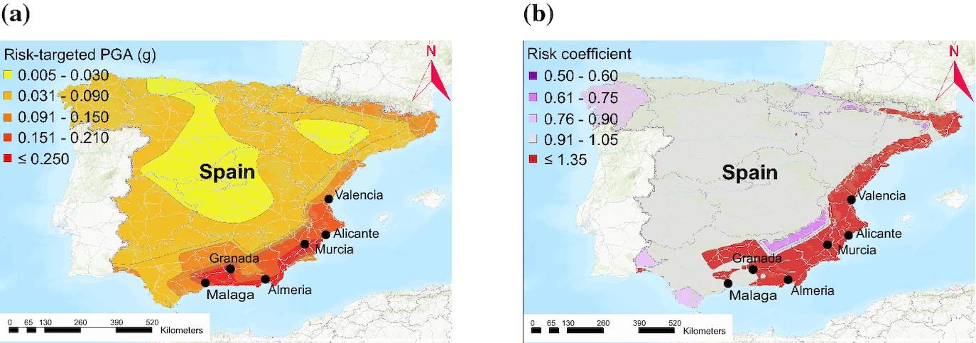 A partir de esa información, y teniendo en cuenta la fragilidad de las edificaciones, han analizado el comportamiento de la probabilidad de colapso y representado esa información en forma de un mapa de coeficiente de riesgo. El mapa y los resultados del trabajo acaban de ser publicados en el artículo 'Risk-targeted hazard maps for Spain', editado en la revista científica 'Bulletin of Earthquake Engineering'.
