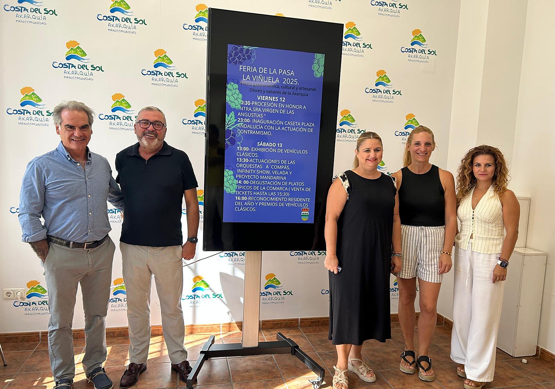 Por otro lado, el vicepresidente en funciones de la Mancomunidad de Municipios de la Costa del Sol Oriental-Axarquía y alcalde de Cútar, Francisco Ruiz (PP); el alcalde de La Viñuela, José Juan Jiménez y la teniente alcalde, Mari Ángeles Fernández, ambos del PSOE, han presentado una nueva edición de la Feria de la Pasa, que se desarrollará entre el viernes 12 y el sábado 13 de septiembre. Al acto también ha asistido la concejala de Turismo, Mónica González y Cynthia García, teniente alcalde de Los Romanes, ambas del PSOE.