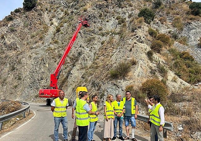 La Diputación de Málaga realiza obras de mejora en la carretera MA-4105, que une Canillas de Aceituno con Sedella. En concreto, se está procediendo a la estabilización de un talud situado en el punto kilométrico 1,380 que, con frecuencia, ocasiona desprendimientos que afectan a la calzada. La diputada de Fomento e Infraestructuras, Nieves Atencia (PP), ha visitado este jueves las obras, adjudicadas a la empresa Geocaminos S. L. por 289.913,48 euros, junto al alcalde de Sedella, Francisco Abolafio (IU), y el primer teniente de alcalde de Canillas de Aceituno, Álvaro Hurtado (PP).