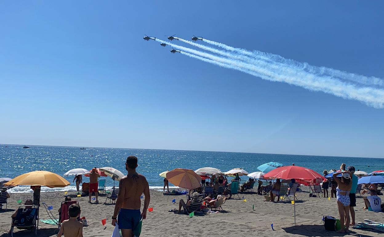 Posteriormente, antes del mediodía ha sido el piloto de élite Alfredo Canseco, del Ejército del Aire, el que ha demostrado su pericia a los mandos de este coloso del aire, sacando lo máximo a esta máquina. La patrulla Aspa, de helicópteros del Ejército español, también ha vuelto a llenar de colorido el cielo torreño, en una jornada espectacular, en la que la playa ya registraba un gran ambiente, con un suave viento de poniente. Hay ganas de festival aéreo tras el parón obligado por la Covid-19. El helicóptero de la Guardia Civil también ha hecho ya varias pasadas por la zona.