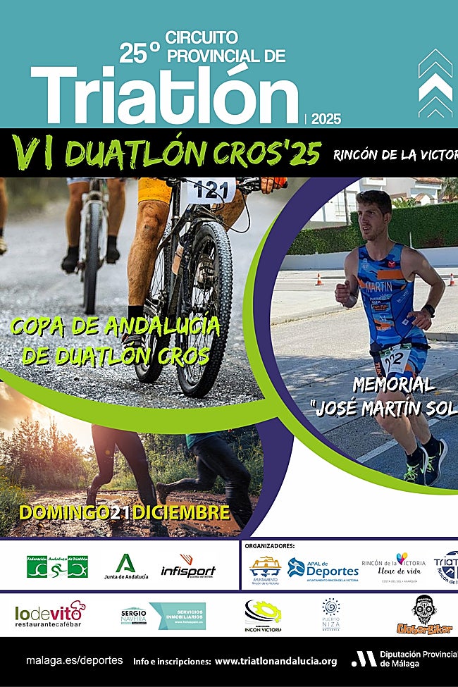 El municipio de Rincón de la Victoria acogerá el VI Duatlón Cros'25, una prueba deportiva incluida en el 25º Circuito Provincial de Triatlón y ... puntuable para la Copa de Andalucía de Duatlón Cros, que se celebrará el próximo 21 de diciembre.