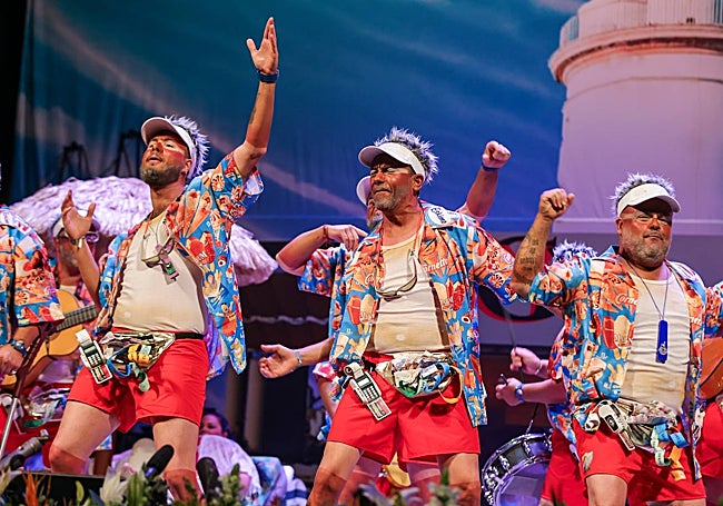 Los comparsistas son náufragos malagueños que suspiran por cada uno de los rincones de la ciudad y no saben vivir sin el mar. Cantan desde El Balneario y presentan un repertorio completamente local, con todas las letras relacionadas con la ciudad. En sus pasodobles hablan de Malagapoly, la ciudad convertida en juguete del alcalde, y de los malagueños que se han vendido al turismo alquilando zulos a 1.000 euros. En los cuplés hablan de las torres que hay en la ciudad y lanzan un recadito a los carnavaleros que los critican.