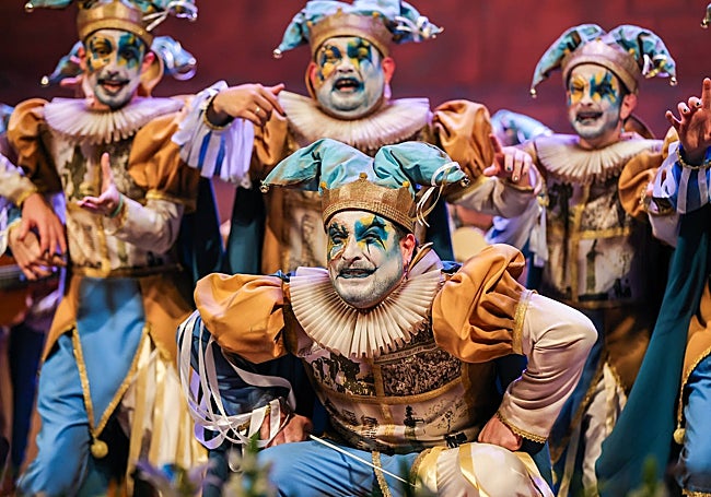 Los comparsistas se presentan como bufones malagueños con mucha fuerza y garra sobre el escenario. En sus pasodobles hablan de las dos Málagas: la turística y la de los barrios, más abandonada y que no interesa al Ayuntamiento; y acusan directamente a los maltratadores porque ahora, en este mundo, son ellos los que están solos. ¡Qué dos letras más bien escritas! Al final del popurrí se desvelan como simples amantes de Málaga. «Ay Málaga no me aplaudas porque esta comparsa yo te la debía», aseguran.