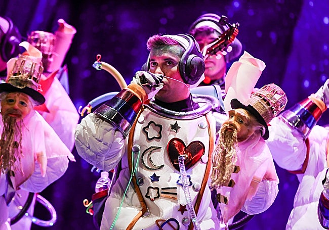 La modalidad de comparsas comenzó con una de las favoritas a colarse en la final: la almeriense 'La tripulación del señor Iluso', que el año pasado obtuvo el segundo puesto en la modalidad y que realizó una bella puesta en escena con un tipo de astronautas acompañados de unas marionetas con las que iban hablando e interactuando.