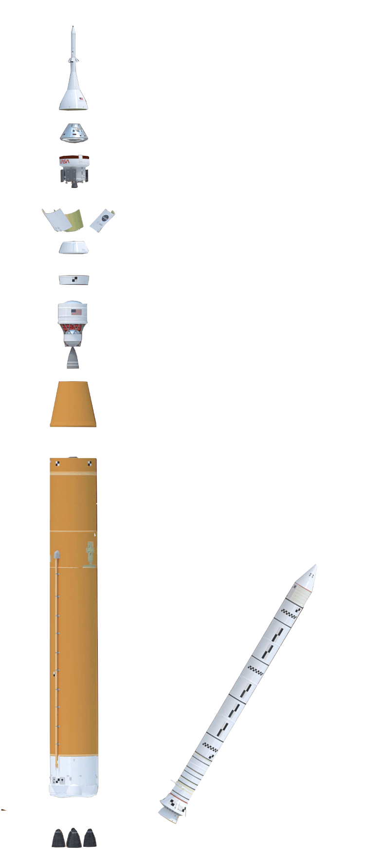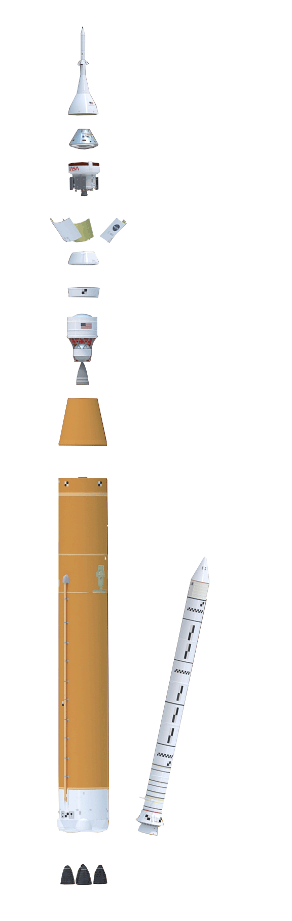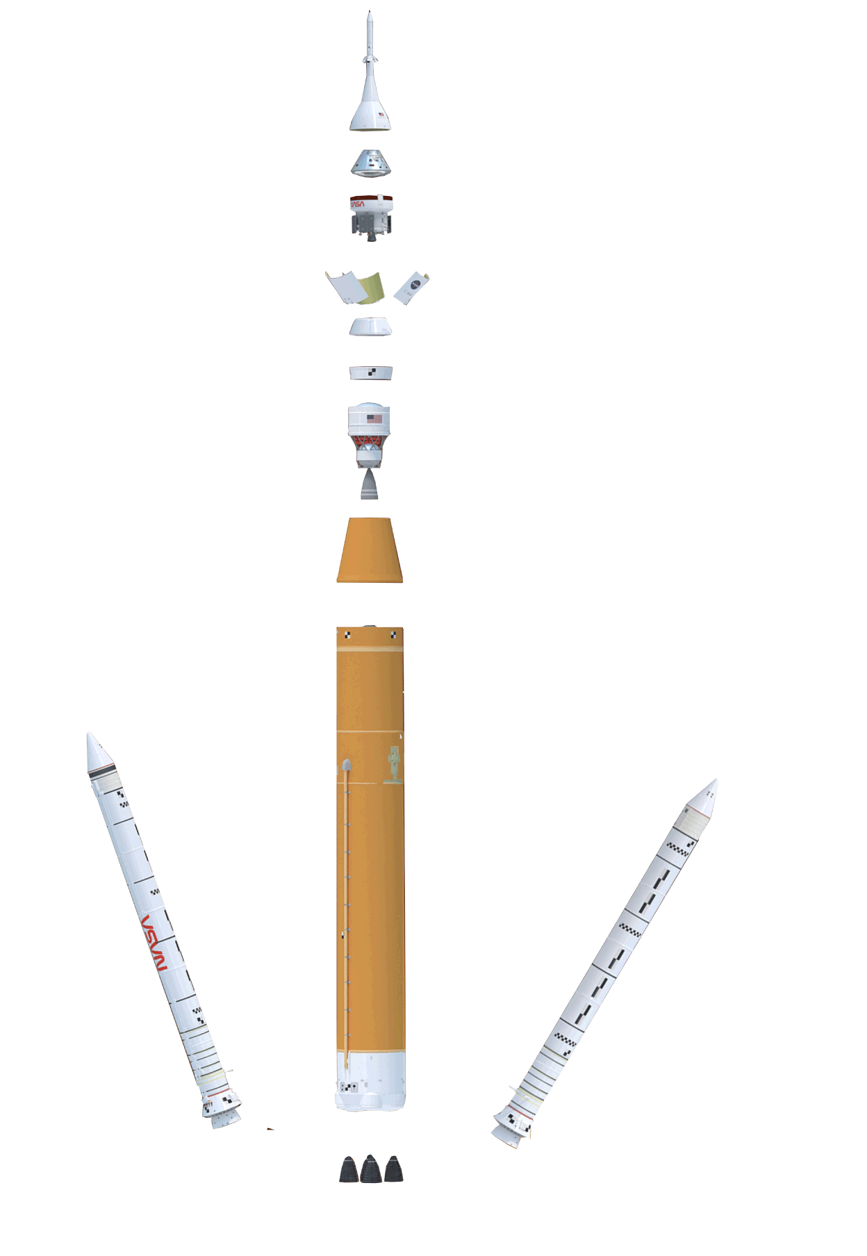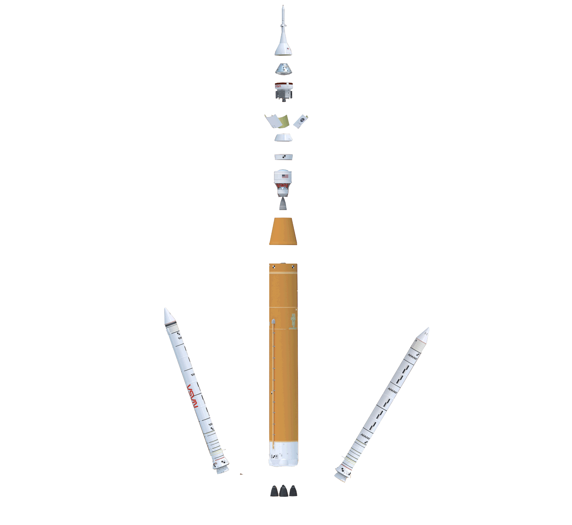 El Sistema de Lanzamiento Espacial (SLS, por sus siglas en inglés) es el más potente y más grande diseñado de la Historia. El cohete propiamente dicho mide 98 metros de altura, que llegan a los 111 con la Orión y el sistema de escape en lo alto. En total, medio metro más que el Saturno V diseñado por Wernher von Braun para las misiones Apolo.