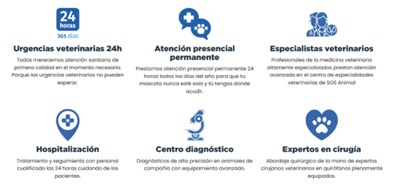El Hospital Veterinario SOS Animal destaca por su servicio de urgencias veterinarias y hospitalización con asistencia presencial 24 horas todos los días del año