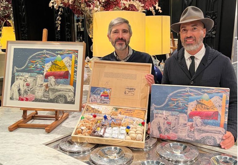 – Hemos incorporado a colección de pintores para adornar las cajas de Navidad de nuestros productos, en un edición limitada y numerada, al gran artista José Luis Puche que ha hecho una composición muy atractiva, y en su línea. Es un lujo que el pintor que ha participado en la decoración pictórica del Teatro del Soho de Antonio Banderas y de sus restaurantes haya hecho la caja.