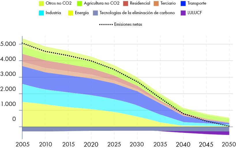 Evolución prevista hacia la neutralidad de carbono en 2050 en la UE