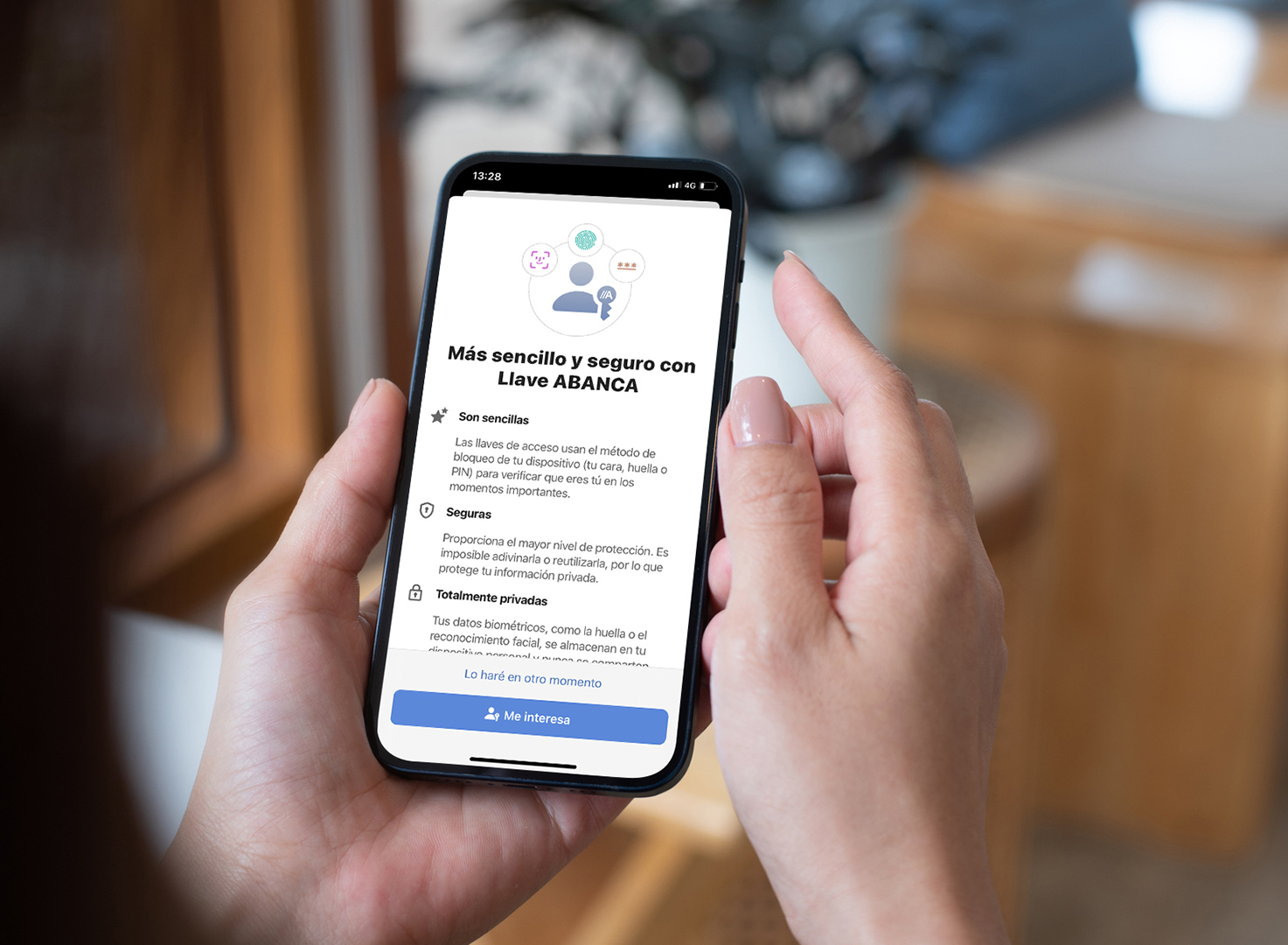 ABANCA es una de las compañías que de manera más decidida ha apostado por la innovación y por reforzar la seguridad de sus canales a distancia. En este sentido, ha sido el primer banco español en implantar en su aplicación de banca móvil la tecnología de llaves de acceso, una manera sencilla y segura de verificar la identidad de los clientes y eliminar el uso de las claves personales en las transacciones, una de esas gestiones a menudo tediosas.