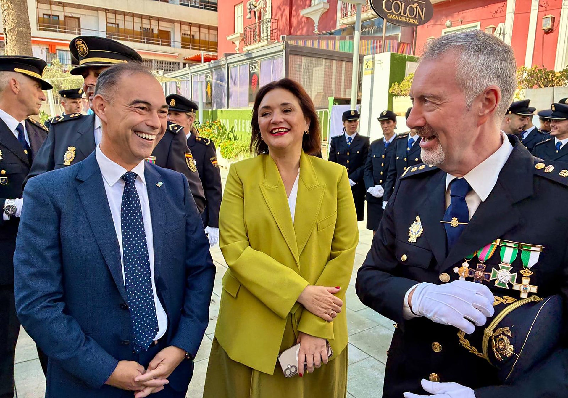 El alcalde benalmadense ha puesto en valor que el trabajo de los casi 500 hombres y mujeres de la Comisaría conjunta ha logrado un descenso en los robos con fuerza e intimidación, sin bajar la guardia ante «los grandes retos, como el crimen organizado, la ciberdelincuencia o la violencia de género». Durante la ceremonia, entre otros, se ha reconocido el buen hacer de los policías nacionales que colaboraron en el desalojo de un centenar de personas a las que cercó el fuego que, el pasado 11 de septiembre, se declaró en las inmediaciones de Torremuelle, en Benalmádena.