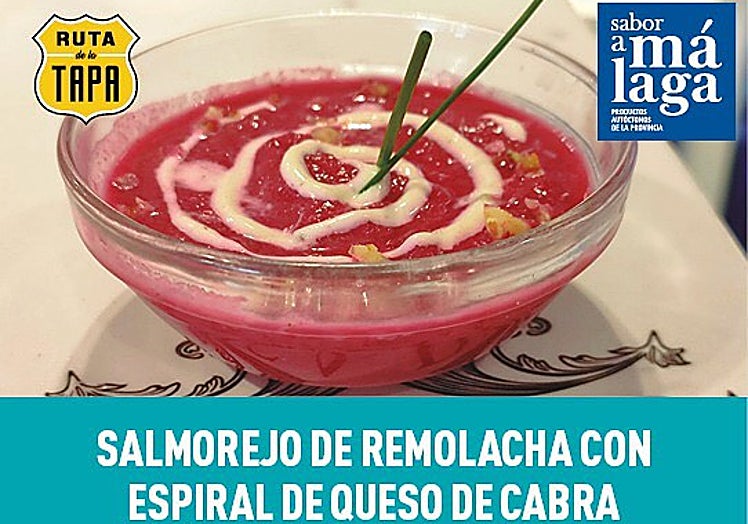 Rompiendo con lo habitual, la Taberna Biznaguera Casa Pepa, situado en la avenida Palma de Mallorca, 4, presenta al concurso un salmorejo hecho con remolacha y mezclado con una salsa de queso de cabra en la superficie. Abre todos los días de 12.00 a 23.30 horas.