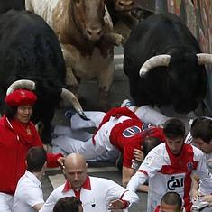 El estreno de los Garcigrande en Pamplona deja embestidas peligrosas pero también una carrera rápida y bonita