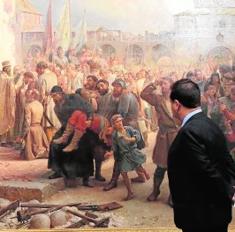 Leer, por ejemplo, la primera cartela que sale al paso en la sala inaugural para comprobar que quien ahí posa es Iván el Terrible con el cadáver de su hijo que él mismo había asesinado. 'Asedio al monasterio de la Trinidad y San Jorge' (1891) a cargo de Vasily Vereschaguin, el formato imponente de 'Escarnio del cadáver de Ivan Miloslavski' (1911) de Gavril Gorelov, el 'Retrato de Catalina II' de autor desconocido y la semblanza de Nicolás II (1896) a cargo de I. E. Repin ofrecen algunos de los momentos más destacados del paseo.