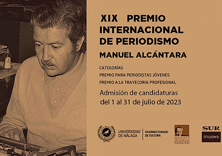 El Premio Internacional de Periodismo Manuel Alcántara cumple 19 años reconociendo el buen periodismo y distinguiendo a las voces más destacadas de la profesión. La ... Universidad de Málaga, Prensa Malagueña -editora de Diario SUR- y la Fundación Manuel Alcántara abren una nueva convocatoria a la que podrán concurrir los trabajos publicados durante el pasado año en cualquier medio escrito de habla hispana, en soporte papel o digital. El plazo de entrega termina el 31 de julio de 2023.