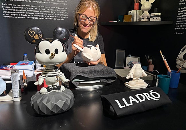 En otro lado de la sala, Lladró exhibe sus superhéroes y personajes Disney en porcelana. Incluso terminan de decorar uno de ellos en directo y a la vista del público. Por 950 euros te puedes llevar a casa un Mickey delicado y brillante. Por 4.170 euros sale La Reina Amidala en la Sala del Trono.