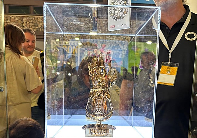 Es el paraíso de los coleccionistas más frikis. Y con más dinero. En San Diego Comic Con Málaga se pueden adquirir algunos de los productos más exclusivos del cómic y la cultura popular. En su tienda oficial, destaca un guantelete de Thanos por 24.750 dólares, en bronce y con gemas preciosas, de la joyería americana East Continental Gems. Solo hay 200 como este, fabricado de forma artesanal, como una réplica exacta -a menor escala- del que luce el supervillano en 'Avengers: Infinity War'. Pero hay una opción más económica: un pequeño guantelete del infinito a modo de colgante, también en bronce y con una piedra preciosa, a 149 euros, en precio especial de la Comic-Con Málaga.