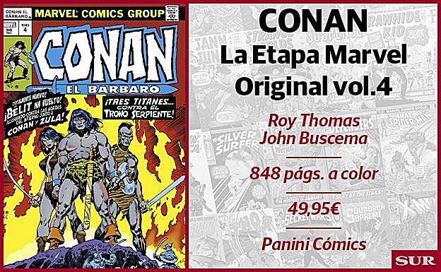Aunque nunca es tarde si la dicha es buena. Panini Cómics, en cuanto se hizo con los derechos del cimmerio, puso en marcha la maquinaria y decidió traer a nuestro país las ediciones de lujo americanas, trabajo que continua en la actualidad. En esta ocasión recopila en su cuarto volumen de la serie 'Conan el bárbaro' los números 84 al 115, además de tres especiales. Es decir, lo mejor del bárbaro en un solo tomo. Una joya indispensable.