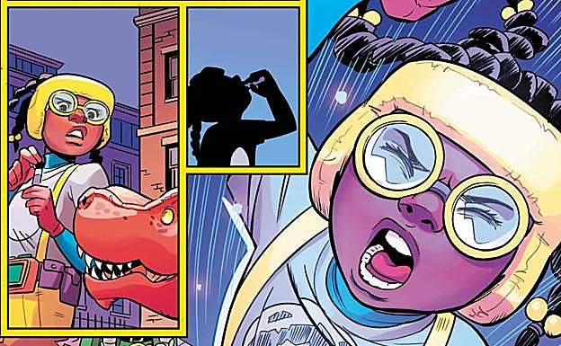 Preguntada por la misma cuestión, Bustos se siente cómoda con una definición de su trabajo que escuchó hace un tiempo: realismo pop. Una obra heredera de la estética del 'cartoon' que ha desplegado en títulos como 'Miles Morales: Spiderman', 'Black Cat' y, sobre todo, 'Moon Girl y el Dinosaurio Diabólico', la saga de Marvel en la que ha participado desde su creación en 2015 y de la que ha realizado más de 40 números.