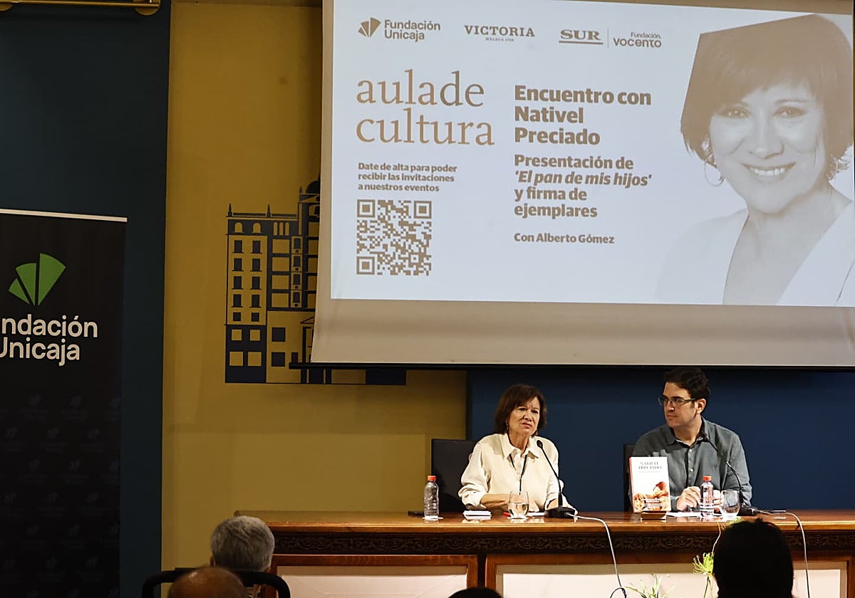 «Vengo tan eufórica», señaló en varias ocasiones durante el encuentro de este martes en el Salón de Actos de Unicaja de la plaza de ... la Marina. Pero es que, por naturaleza y tal y como se define, Nativel Preciado es una persona optimista ante la vida. La escritora y periodista dejó huella con una visita al Aula de Cultura de SUR para presentar su nueva novela 'El pan de mis hijos' (Espasa), en la que se lee entre líneas la faceta más realista de la autora. Catalogada por ella misma como la más personal e íntima que ha escrito, la presentación en Málaga se convirtió en una excusa perfecta para que se debatiera sobre la importancia de la familia y la amistad y se reflexionara de cosas tan extremas como la pérdida de seres queridos o la polarización política actual y la influencia de las redes sociales.
