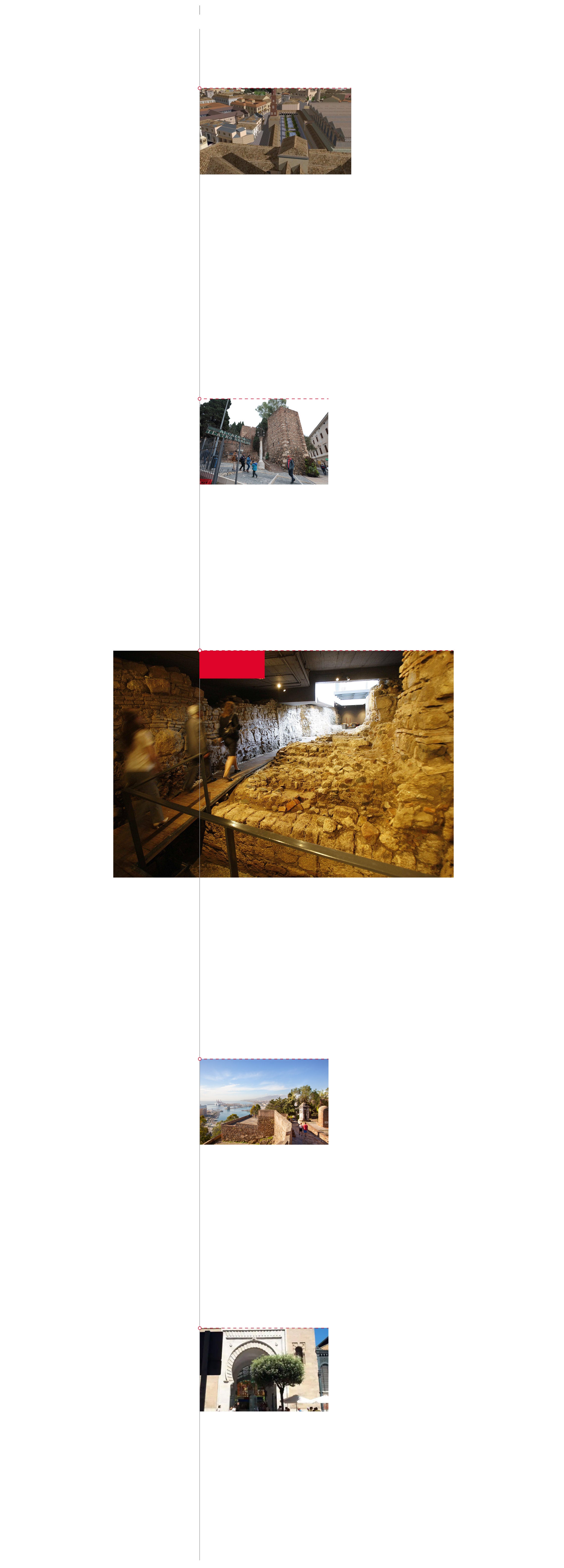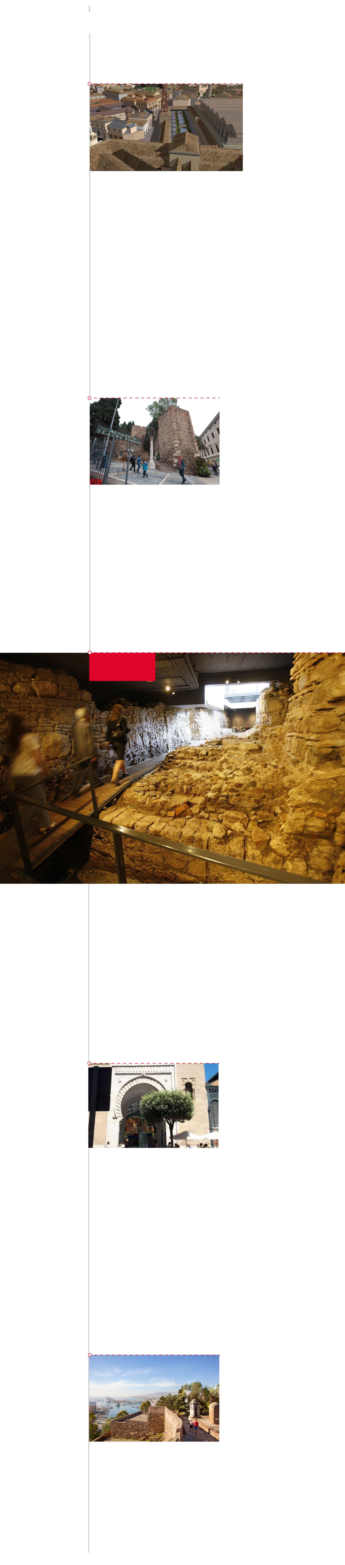 Conjunto defensivo que los fenicios adaptaron a la orografía del terreno. Se han localizado tramos en el edificio del Rectorado de la UMA -antiguo Correos-, que corría paralelo al mar, y grandes muros en los sótanos del convento de San Agustín, mientras que en el Palacio de Buenavista, sede del Museo Picasso, se conservan los lienzos mejor conservados con alturas de hasta 4 metros.