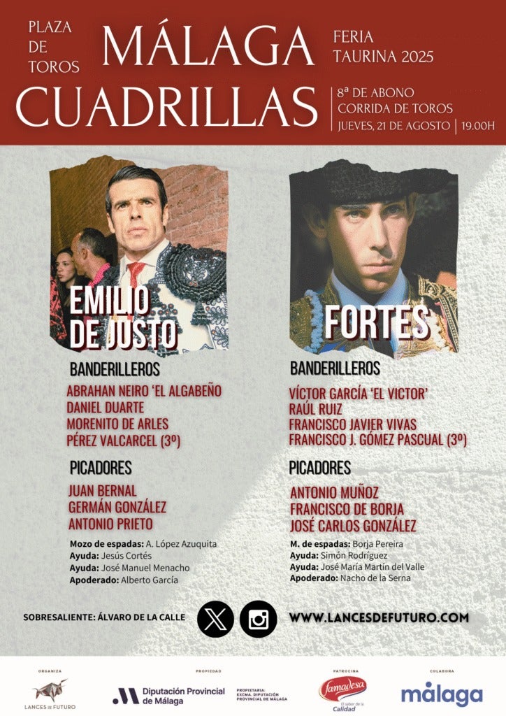 La octava y última del abono malagueño es un mano a mano entre Emilio de Justo y el local Fortes, los triunfadores de las dos últimas ferias en La Malagueta. Como sobresaliente actuará Álvaro de la Calle.