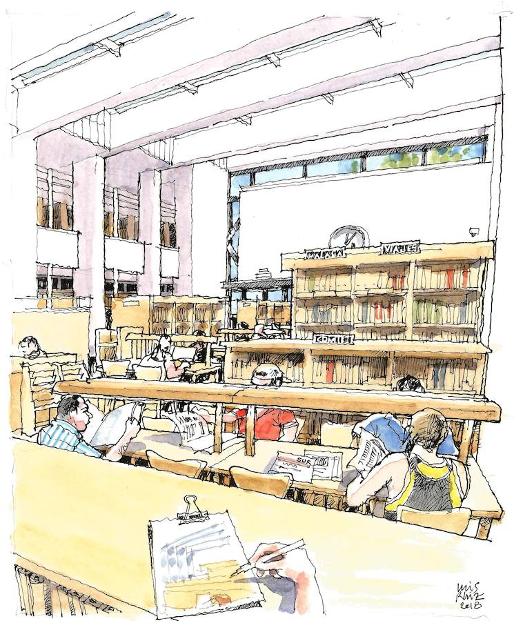 Una biblioteca como la Cánovas del Castillo es un ecosistema complejo de cuyos usuarios es posible ensayar una clasificación. Como en todo hábitat, hay visitantes ... ocasionales y especies residentes. Los ejemplares más variopintos se agrupan en torno a la prensa diaria pero suelen permanecer allí poco tiempo, al igual que quienes utilizan los ordenadores con acceso a internet. Los avistamientos más gratificantes son -sin duda- los de familias que con paso jovial se encaminan a la sala infantil mientras la bibliotecaria las sigue con la vista, sonriendo; su estancia suele ser algo más prolongada que la de los anteriores. Por último, estudiantes y opositores se acomodan a jornada completa en las mesas más alejadas de la entrada.