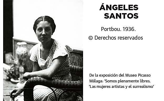Nació en la localidad catalana de Port-Bou en 1911. A los 14 años, en un internado sevillano, descubre su pasión por el dibujo. Poco después se marcha con su familia a vivir a Valladolid. «Ésta es una circunstancia muy interesante de muchas de estas mujeres: sus vidas están marcadas por los constantes viajes y los traslados», destaca José Lebrero. En el 28 y 29 expone en el Ateneo de Valladolid. En el 29, es invitada al Salón de Otoño de Madrid donde participa con tres cuadros. Uno de ellos, ‘Un mundo’, hoy en la colección del Museo de Arte Reina Sofía, causó sensación, hasta el punto que en 1930, con 19 años, le dedican una sala personal. En los años 30 muestra su obra en Copenhague, París y hasta en Pittsburgh, la ciudad de Warhol. Participa en la Bienal de Venecia del 36. Ese año, se establece en Cataluña y se casa con el pintor Emilio Grau Sala, que se tuvo que exiliar. «Y se acabó, la obra importante de ella es la de los años 28, 29 y 30. Vivirá hasta los 102 años. ¿Que puede haber pasado? A veces, el compromiso con los nuevo, lo renovador, los visionario o la vanguardia dura solo un tiempo. Ángeles Santos se casa y desaparece de la escena, probablemente seguirá pintando en un ambiente pequeñoburgués. Carrington es conocida internacionalmente. Santos, sólo en nuestro entorno, porque tuvo un contacto con el surrealismo muy breve, no estaba donde se cocían las cosas», concluye el director del MPM.