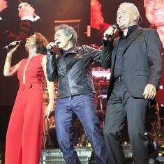 'El blues del autobús', 'Derroche' o 'Esos locos bajitos' fueron otros de los temas ofrecidos al público, que pudo disfrutar además de la interpretación que de Elvis hizo Serrat en 'Are you lonesome tonight' o de Ana Belén imitando a Mercedes Sosa con 'Solo le pido a dios'. En esta exhibición de fuerza y repertorio que superó las tres horas, en un espectáculo que parecía no querer acabar, se despidieron con 'La Puerta de Alcalá', aunque el colofón fue el 'Himno de la Alegría'.