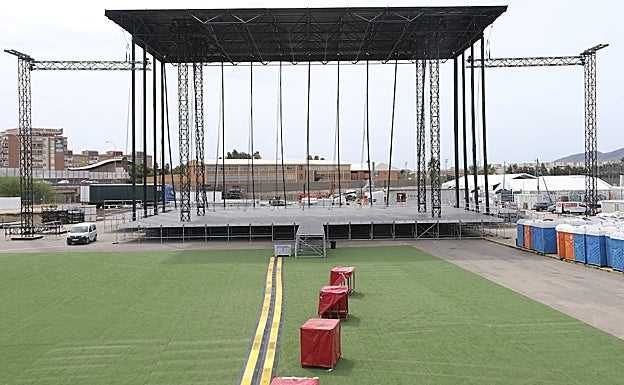 -Pues al 50%. Tenemos los escenarios 1 y 2, estamos con la instalación del césped, que en total serán unos 45.000 metros cuadrados en todo el recinto. El domingo -por hoy-, tras el rastro, comenzaremos con el escenario 3. El montaje va bien y la previsión climatológica es buena. Lo peor para la música es el viento, más que el agua, ya que es lo que te obliga a parar y eso parece que lo tenemos controlado.