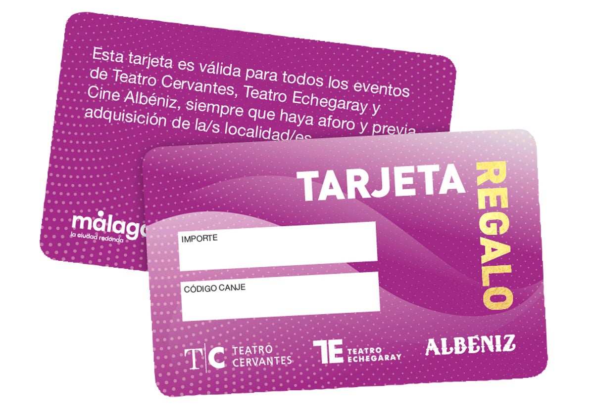 Tarjeta regalo canjeable por entradas para los espectáculos y las proyecciones cinematográficas programados por el Teatro Cervantes, el Teatro Echegaray y el Cine Albéniz. Caduca solo cuando se agota el saldo. Funciona como cualquier otro medio de pago. Puede ser física si se adquiere en la taquilla del Teatro Cervantes o digital, si se adquiere a través de Internet. Y es al portador, por lo que puede ser utilizada por cualquier persona que la posea.