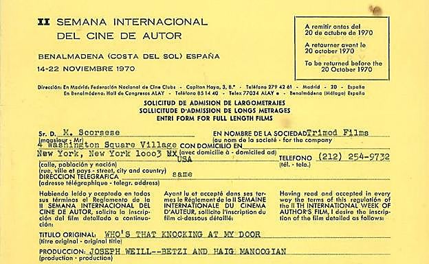 Lo leyó y no salía de su asombro. Por eso, lo volvió a mirar detenidamente para comprobar que allí decía: «Sr. D. M. Scorsese». ... El papel añejo y teñido de amarillo por los 45 años que han transcurrido desde que se firmó en Nueva York ha permanecido en los archivos del Ayuntamiento de Benalmádena hasta que la digitalización del fondo local reveló esta desconocida solicitud de la desaparecida, añorada y revolucionaria Semana Internacional de Cine de Autor (SICAB). «El descubrimiento fue muy emocionante», reconoce la bibliotecaria María del Carmen Martín, que en otro documento dio con las «exigencias» del entonces joven cineasta que, finalmente, no compitió en el también naciente festival costasoleño. El documento rubricado por el director de 'Uno de los nuestros' (1990) y 'Casino' (1995) es una de las piezas más llamativas que se exhibió en la exposición 'La Semana de Cine de Autor de Benalmádena', que trató en 2015 de rescatar la influencia de este certamen único en España que no solo exhibió películas prohibidas y cinematografías ignoradas en nuestro país, sino que se convirtió en punto de encuentro de cineastas renovadores, antifranquistas y demócratas que encontraron en el festival el espíritu de libertad al que se resistía el tardofranquismo.