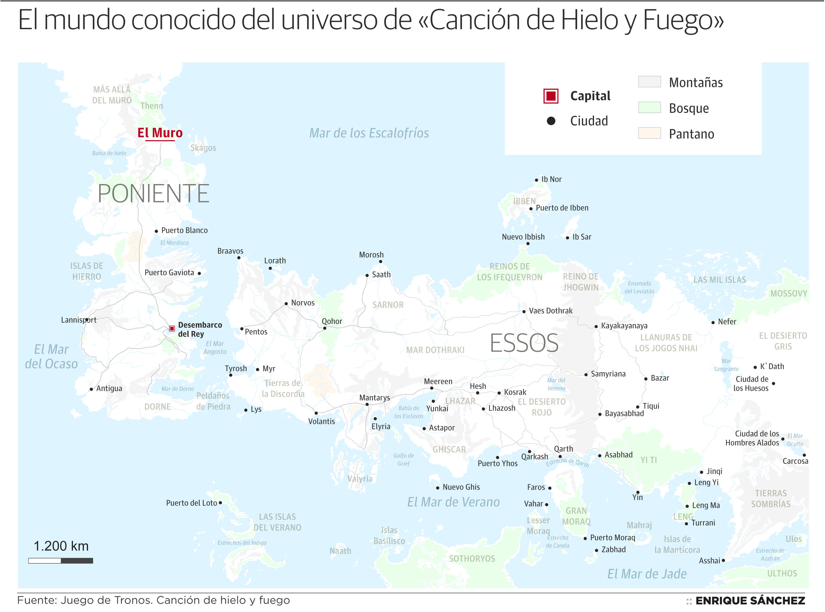 ¿Cómo sería el mundo de 'Juego de tronos' si se pudiera recorrer en coche? Entre hoy y mañana, este periódico va a publicar una serie de mapas* que suponen la comparación entre el vasto territorio imaginado por George R. R. Martin y los mapamundis reales de la Tierra. Además, se ha elaborado una representación gráfica de Poniente, Dorne o los diferentes mares que rodean el espacio de la serie más vista de la televisión, en función tanto de su población como de las evoluciones de los juegos de poder que han marcado las siete entregas de esta saga.
