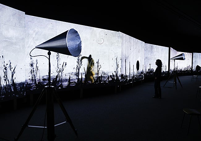 El artista sudafricano desafía a la muerte a través de la danza en una «grandiosa» instalación sobre ocho pantallas gigantes que combina vídeo, dibujo y música