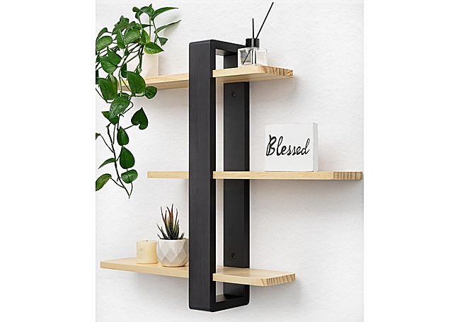 Presenta tres baldas de madera de paulownia con soportes metálicos, lo que garantiza resistencia y ligereza en un formato compacto. Su diseño permite instalar los estantes en distintas orientaciones y tamaños, aportando versatilidad decorativa. La superficie es resistente a la humedad y fácil de limpiar, mientras que el montaje resulta sencillo gracias a los componentes incluidos.