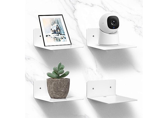 Fabricados en acrílico blanco, estos estantes autoadhesivos de Qixora ofrecen un diseño minimalista y resistente a la humedad. Su sistema permite instalarlos sin taladrar, adaptándose a diferentes superficies y soportando hasta 3,5 kg cada uno. Las esquinas redondeadas y el orificio para cables aportan seguridad y funcionalidad en un formato compacto y fácil de limpiar.