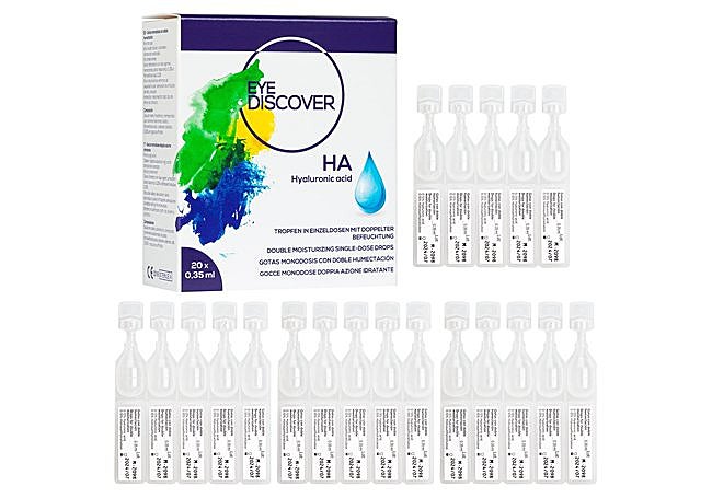 Presentado en monodosis sin conservantes, EYE DISCOVER combina ácido hialurónico e hidroxietilcelulosa para lograr una hidratación ocular inmediata y prolongada. Su fórmula proporciona frescor y lubricación, ayudando a mantener el confort visual sin visión borrosa. Estas lágrimas artificiales están diseñadas para ojos sensibles y son compatibles con todo tipo de lentes de contacto.