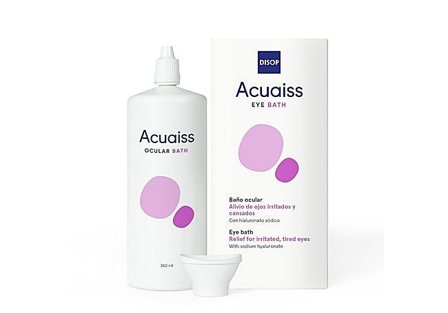 Acuaiss Solución de Lavado Ocular es un producto con fórmula de ácido hialurónico que limpia e hidrata los ojos. Viene en un formato de 360 ml con bañera oftálmica para una aplicación higiénica. Su composición biocompatible y pH equilibrado están diseñados para proteger los ojos sensibles, evitando irritaciones y contribuyendo a la salud ocular.