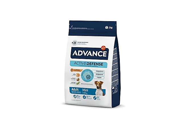 Este pienso Advance Mini Adult Chicken contiene croquetas adaptadas para perros de razas pequeñas y una fórmula con proteínas, ácidos grasos omega 3 y 6, y zinc. Incorpora ingredientes digestibles. El formato de 3 kg permite su almacenamiento y conservación diaria.