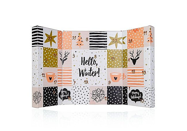 El calendario de adviento Accentra tiene un diseño compacto y resistente. Contiene 24 artículos de maquillaje y cosméticos, incluyendo brillo labial, sombras de ojos y esmalte de uñas. Cada compartimento está diseñado para proteger los productos y mantenerlos organizados. El calendario ofrece una manera organizada y atractiva de presentar los productos durante la temporada navideña.
