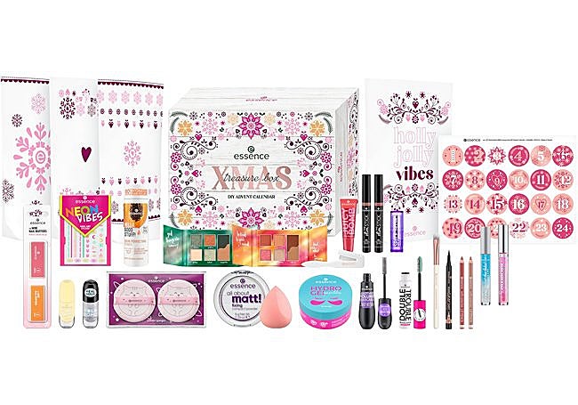 Con un formato DIY creativo, el calendario de adviento essence XMAS treasure box incluye 24 productos exclusivos de maquillaje para rostro, ojos, labios y uñas. Incorporando bolsitas de papel y pegatinas numeradas, permite una presentación personalizada. La selección abarca desde máscaras de pestañas hasta esmaltes y accesorios, ofreciendo variedad y detalles festivos en cada compartimento.