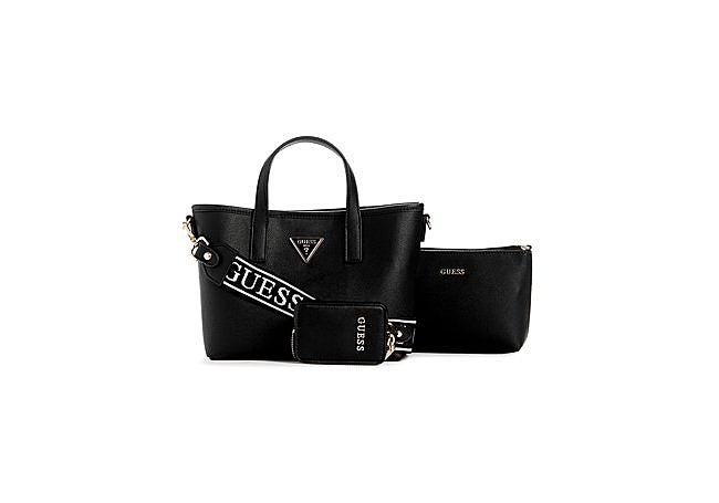 El mini bolso Latona de GUESS está fabricado en poliuretano texturizado y cuenta con herrajes dorados. Incluye un bolsillo interior extraíble y un cierre magnético. Sus dimensiones permiten un formato manejable y ligero. Se recomienda limpiarlo con un paño suave y evitar la exposición prolongada al sol.