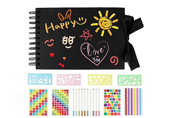 Presenta una cubierta de cartón resistente y 80 páginas negras de papel grueso, este álbum de fotos de talifoca destaca por su formato personalizable y accesorios incluidos, como rotuladores y pegatinas. El diseño permite decorar y escribir junto a las imágenes, facilitando la conservación creativa de recuerdos con materiales duraderos y espacio suficiente para colecciones fotográficas variadas.