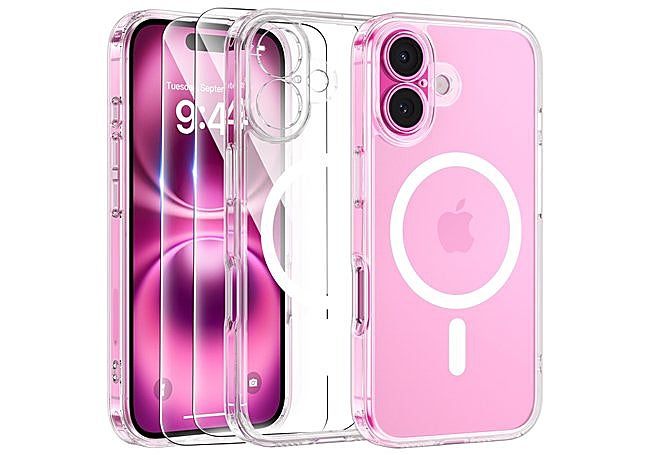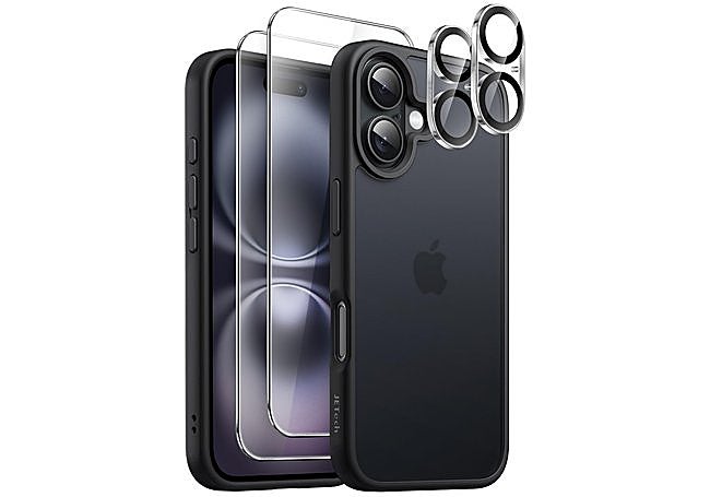 Si buscas protección sin renunciar al diseño, la funda JETech 5 en 1 para iPhone 16 es una opción equilibrada para el uso diario. Su carcasa translúcida mate muestra el logo y evita huellas, mientras el marco de TPU flexible y la parte trasera de policarbonato aportan resistencia sin añadir grosor.