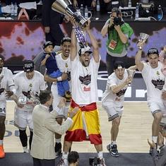 Felipe Reyes también quiso agradecer a Florentino Pérez, "todo el esfuerzo que está haciendo por el baloncesto". "Sin él no sería posible", afirmó en referencia a Florentino, antes de salir al balcón de la Puerta del Sol con el trofeo y dirigirse a la afición. "Estamos felices de traer la novena Copa de Europa. ¡Hala Madrid!", gritó Reyes, obligando al MVP, Andrés Nocioni, a "decir unas palabras". "Es un placer entregar el trofeo a esta grandísima afición". "El MVP es el equipo entero", aseguró el 'Chapu', mientras decenas de seguidores coreaban el grito de "¡Campeones, campeones!" previo al obligado "We are the Champions", antes de que los nuevos reyes de Europa se dirigiesen a la sede del Ayuntamiento de Madrid.