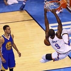 La gran labor de Ibaka en el juego defensivo permitió a los Thunder concluir el partido con 52 rebotes por tan sólo 38 de los Warriors, que vieron como el pívot australiano Andrew Bogut se cargó en los primeros minutos del partidos con dos faltas personales que le impidieron ser factor de ayuda a los campeones de liga el resto del tiempo al jugar sólo 12 minutos.