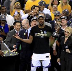Durant, que jugó su primera temporada con los Warriors tras abandonar a los Thunder de Oklahoma City para convertirse en agente libre, volvió a ser el hombre decisivo en el ataque de los Warriors al anotar 14 de 20 tiros de campo, incluidos 5 de 8 triples, y estuvo perfecto 6-6 desde la línea de personal. El alero estrella de los Warriors también capturó siete rebotes y repartió cinco asistencias para ser nombrado ganador del premio de Jugador Más Valioso (MVP) de las Finales.