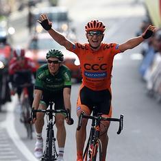 El polaco se impuso a sus compañeros de escapada Rolland y De Clerq