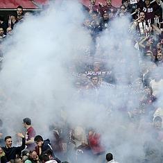 Hinchas de la Juventus lanzaron el artefacto a aficionados del equipo local durante el derbi de la liga italiana