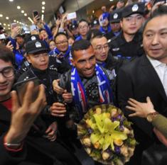 El delantero argentino, que cobrará 38 millones de euros anuales en el Shenhua, es aclamado a su llegada al aeropuerto