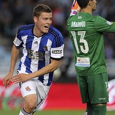 Con un juego que hacía meses no exhibían los blanquiazules, avisaron primero con un tanto anulado a Carlos Vela por fuera de juego en los minutos iniciales y en el 13, tras una preciosa jugada de Prieto y Yuri, el envío del lateral guipuzcoano lo aprovechó en el área pequeña el islandés Finnbogason para marcar.